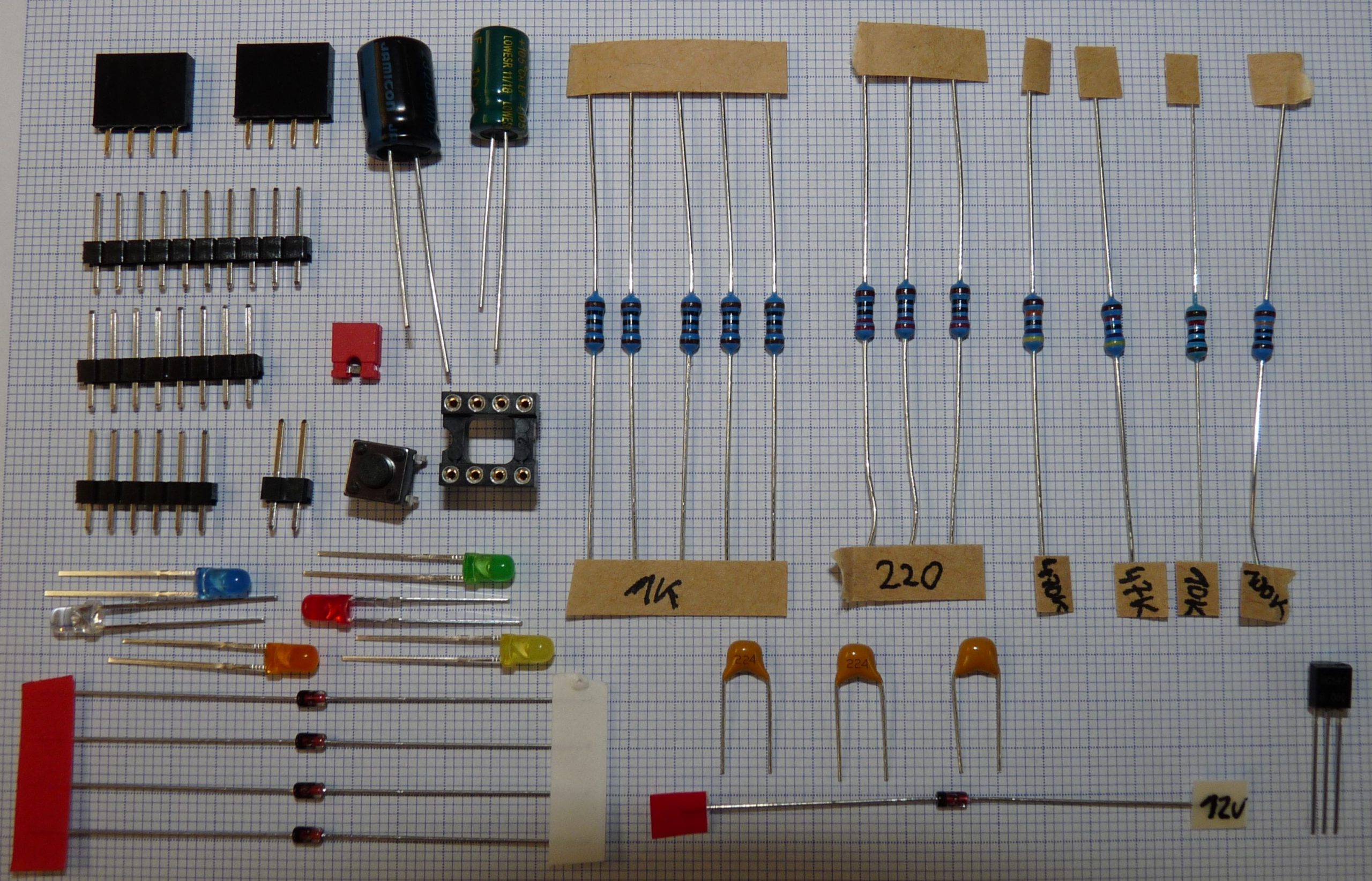 Bauteile für die Bestückung der Platine „Attiny-Programmer (400)“