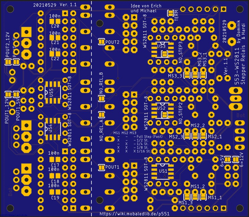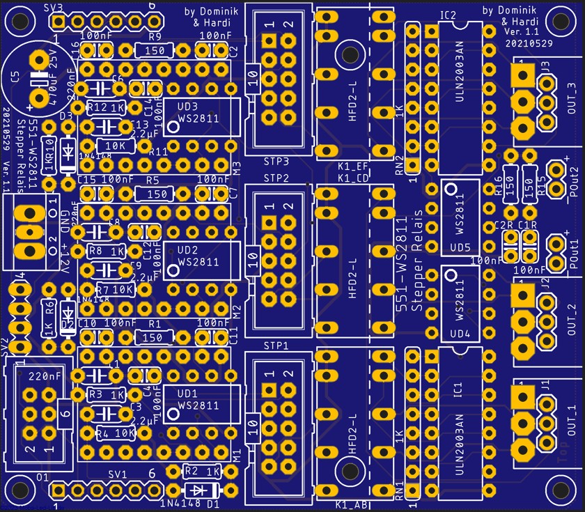 Dreifach Stepper Platine mit Relais zur Polarisierung der Herzstücke