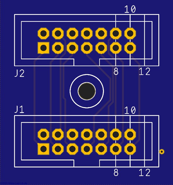 Diese Platine kann verwendet werden, um Flachbandkabel mit Wannenstecker bis maximal 14 Pole zu verlängern bzw. um das Kabel aufzusplitten.
