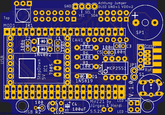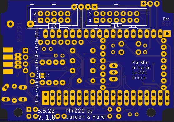 Die MIRZ21 ist ein kleines Kästchen auf Basis eines ESP8266 oder ESP32, welches verschiedene Handregler mit der Märklin MS2 & Gleis-Box oder der Märklin CS2/CS3 verknüpft.